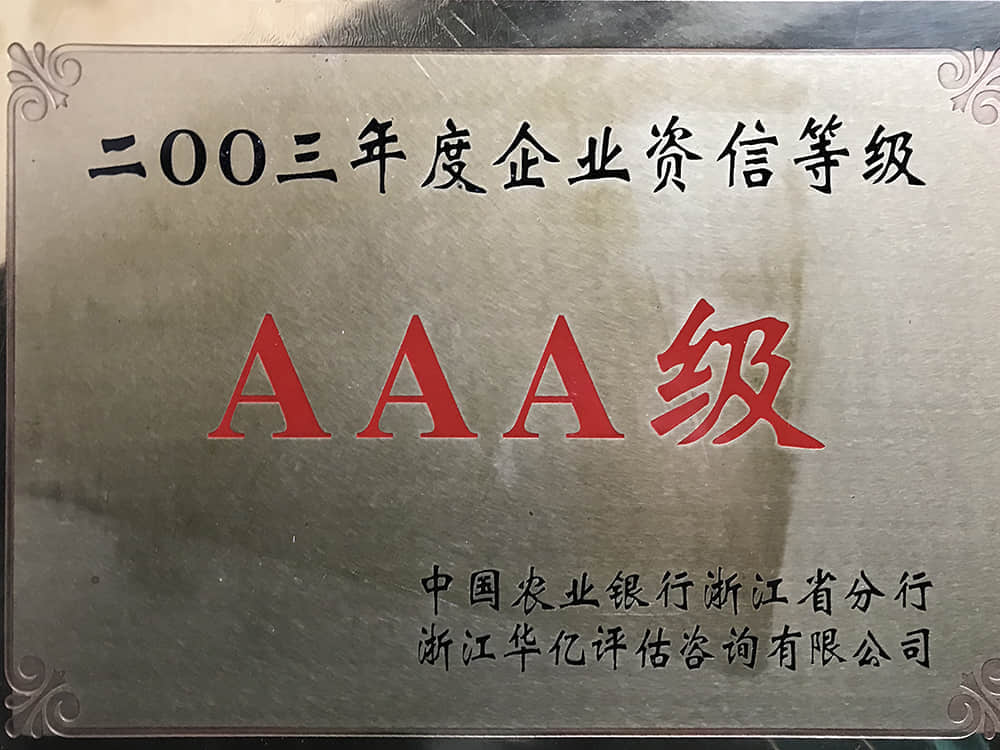 • 2003年度企業資信等級AAA級